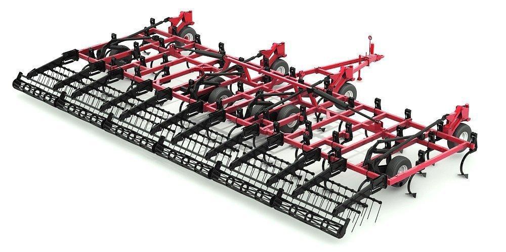 Расположенные в 5 рядов и оптимально расставленные по раме стойки стрельчатых лап обеспечивают беспрепятственное прохождение большого количества растительной и пожнивной массы через культиватор. Схема расстановки лап минимизирует налипание на колеса влажной почвы и положительным образом сказывается на равномерности заглубления. Доступны трехсекционные модели с шириной захвата 8,2/10,2/12,2, м для агрегатирования с тракторами от 210 до 350 л.с., и пятисекционные модификации 14,8 м и 18,3 м для тракторов 350…530 л.с.